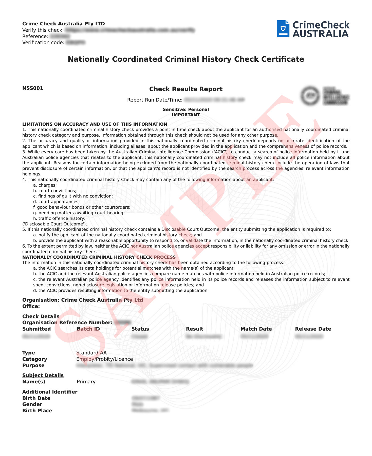 We are accredited by the Australian Criminal Intelligence Commission’n (ACIC) as a National Police Checking Service (NPCS) provider. All background check results and personal data are protected using the highest standards.